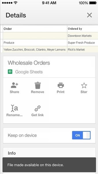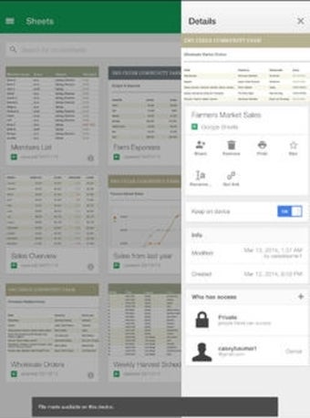 Google Sheets ti consente di creare e modificare fogli di lavoro, che verranno salvati in formato Sheet sul tuo smartphone o tablet. Tutti i documenti salvati vengono poi sincronizzati con il tuo Google Drive, così potrai aprirli non solo dal tuo dispositivo mobile, ma anche dal web o da PC.